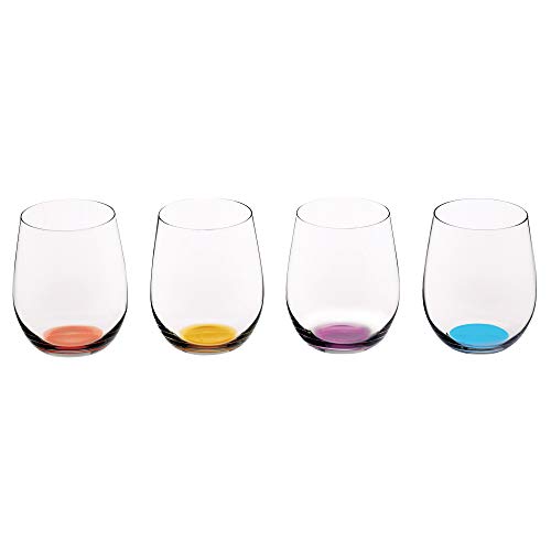 The handy machine-made soft drink glass of the space-saving glass collection O wine tumbler spreads a good mood With its stemless design and the colorful base.