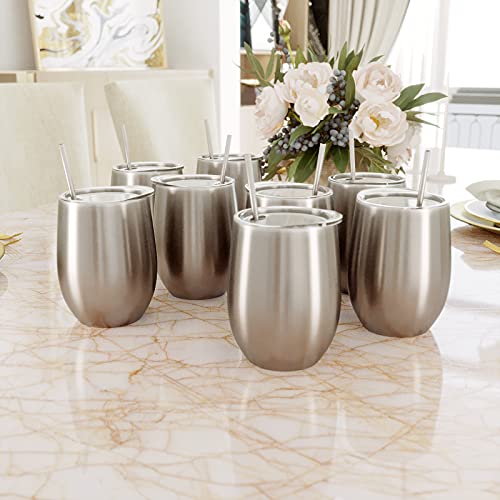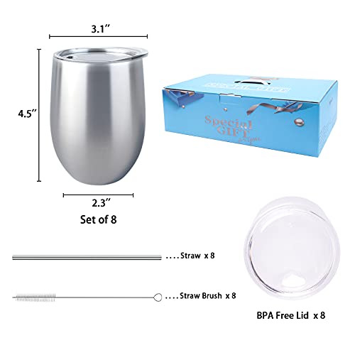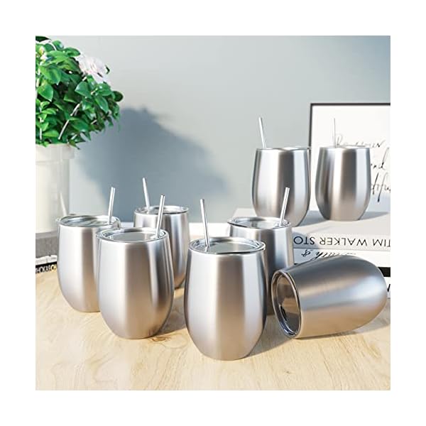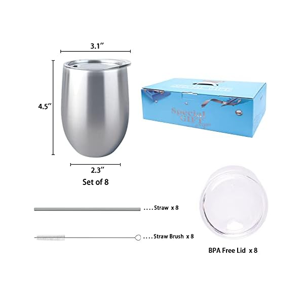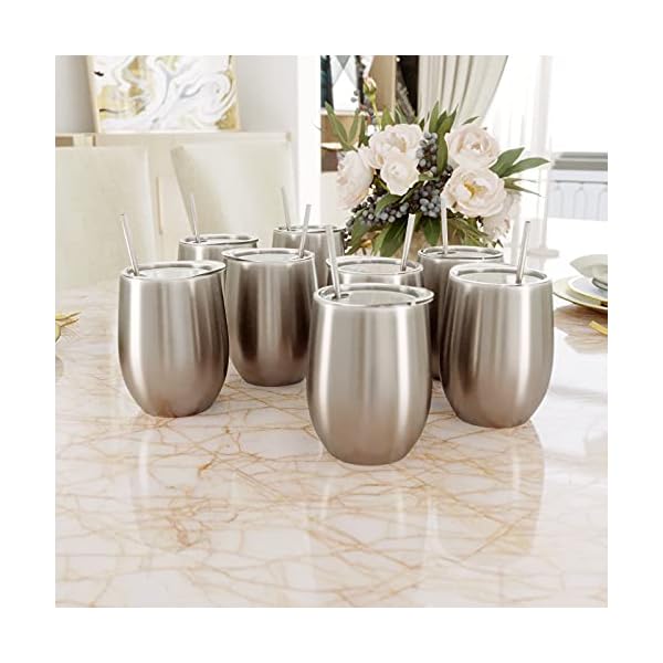 【PERFECT PARTY GIFT】Our Stainless Steel Wine Tumbler Set of 8 is designed for party, You will get 8 wine tumblers in this set and each with a lid and a straw, perfect for family use or party, this elegantly designed vacuum wine tumbler with lid is a wonderful gift for your family, your friends, and yourself!