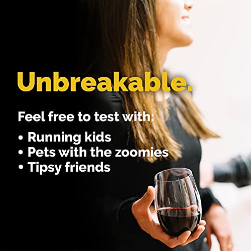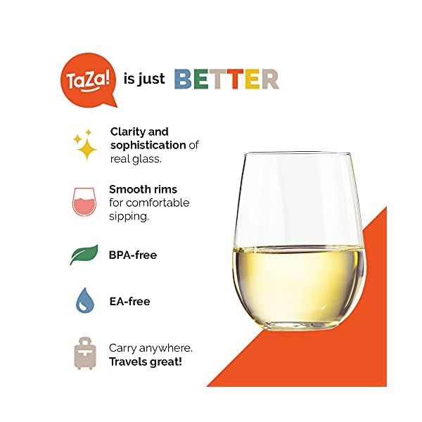 BPA FREE STEMLESS WINE GLASSES: 100% USA-made Tritan plastic is better than some cheap plastic wine glasses or acrylic stemless wine glasses that may contain harmful ingredients. TaZa Tritan plastic unbreakable wine glasses are BPA-free and EA-free, so the only thing you’ll be tasting is your red wine.