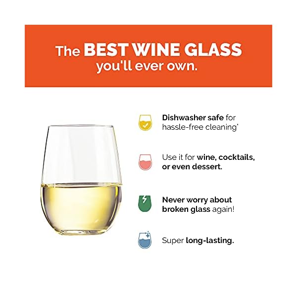 ENTERTAIN IN STYLE: The perfect plastic stemless wine glasses for parties: Impress your guests at your parties with these plastic vino glasses that look as crystal clear as real glass. We do call them plastic stemless wine glasses, but you could use these for pretty much any drink: from juice to red wine, white wine or rosé, to whiskey or just water. After your parties, just toss the plastic stemless wine glass into the dishwasher and you’re good to go!