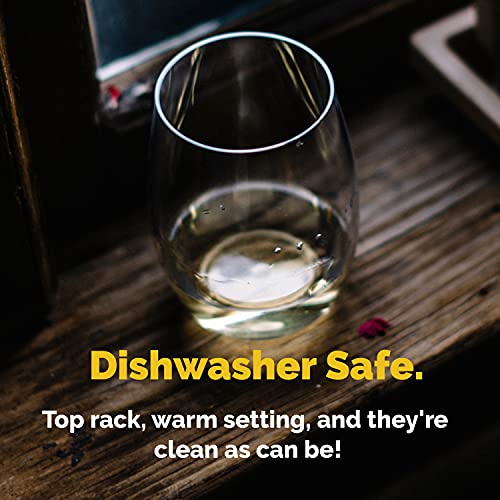 TaZa Unbreakable Stemless Wine Glasses: Elegant Shatterproof Tritan Plastic Outdoor Cups with Weighted Base | Dishwasher…